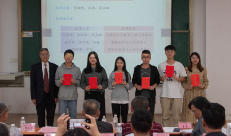 廖振亮副校长(左一)为一等奖获奖学生颁奖