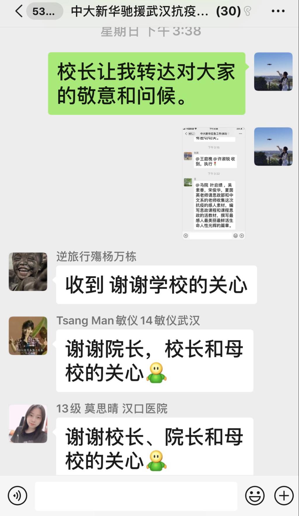 中山大学新华学院驰援湖北的护理校友知道母校的关爱后在微信群里表示感谢