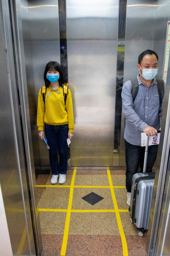 体温正常者在食堂外按“七步洗手法”标识洗手