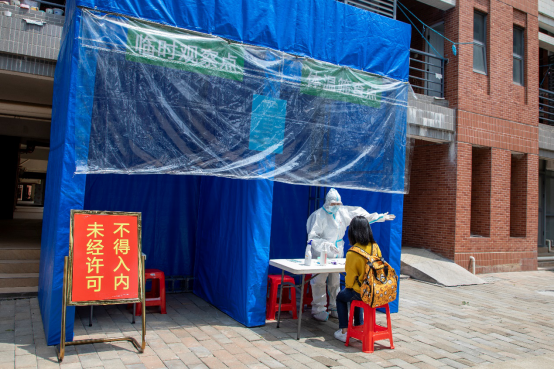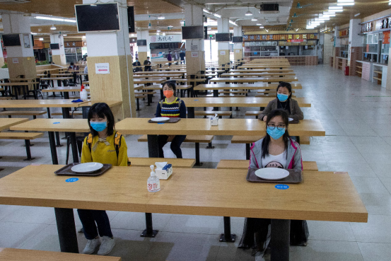 学生体温异常则分流至食堂外的临时观察点休息后再测体温