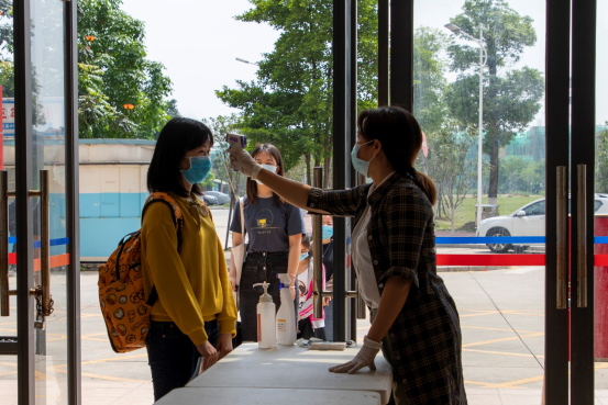 为检验学生返校疫情防控应急处置预案的科学性和可操作性,进一步提升学校疫情防控应急处置能力,保障师生员工的生命安全和身体健康,中山大学新华学院于4月16日上午,在广州和东莞两校区同时开展了学生返校疫情防控模拟演练,包括学生进入校门、进入宿舍、进入食堂就餐、进入教室上课、到医务室就诊五个演练场景。