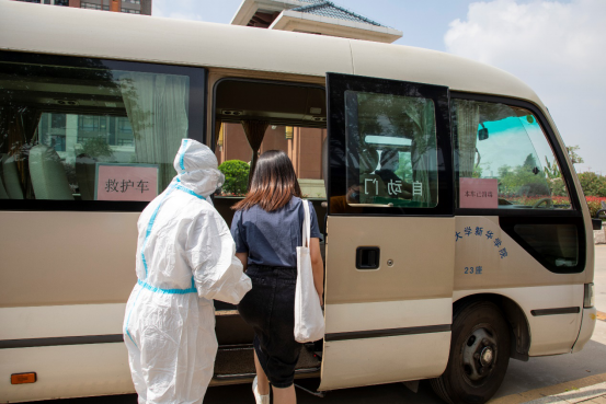 学生电话报告辅导员老师,医务人员联系属地定点医院派救护车到场