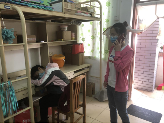 学生辅导员老师到宿舍了解情况并陪同学生到医务室就诊