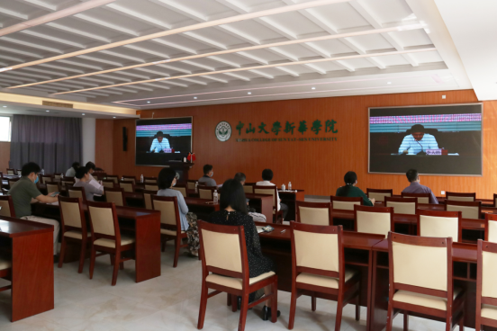 中大新华组织收看2020年全省高校思想政治工作视频会议现场