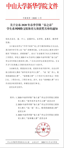 为了丰富全体学生“开学不返校”线上学习期间的课余文化生活,展示大家同心抗“疫”的精神风貌,学校从2020年4月8日开始举办2020年春季学期“春之春”学生系列文娱体育大赛。