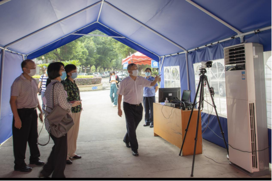 督查组实地督查和体验防疫测温热成像系统