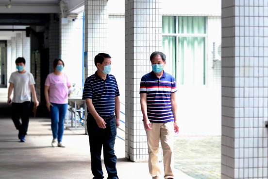 中大新华首批学生返校当天一早,李中生副校长再检查再强调返校相关工作及注意事项
