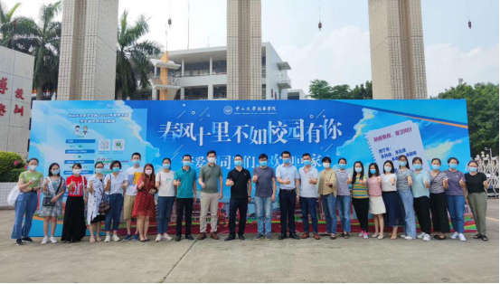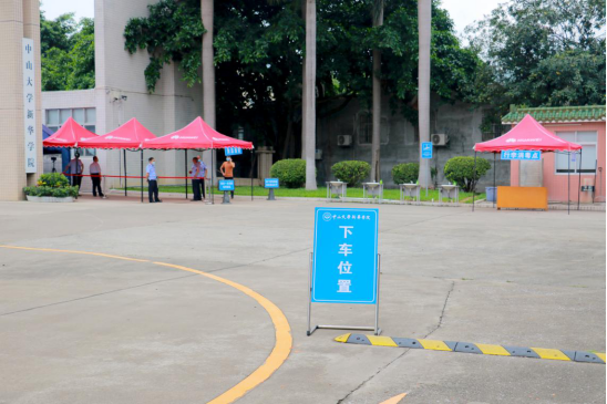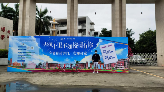 中大新华2020年春季学期首位同学返校啦,辅导员们在新华门指引学生入校。小安同学作为本学期开学的第一个返校学生,看到学校为返校学生所做的一切准备感到十分暖心。