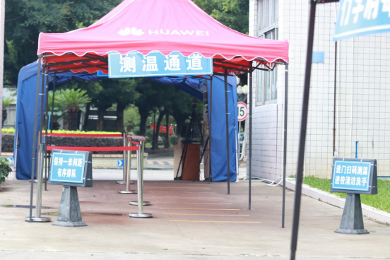 进校时严格按照学校的疫情防控要求开展测量体温等健康检查,住宿的学生按照规定线路返回宿舍。