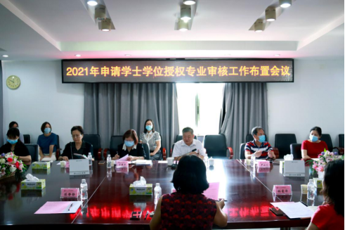 首先,王庭槐校长介绍了2021年学士学位授权申请工作要求。王庭槐强调,要遵循“以评促建、以评促改、以评促管、评建结合、重在建设”的原则,重点抓好专业审核材料的归整及专业建设情况汇报、专业简况表的撰写工作,全力以赴抓好办学条件建设、专业实验室和实习基地建设、教师队伍建设和教研科研工作,严格教学过程管理,加强实践教学和毕业论文(设计)工作,确保顺利通过审核。