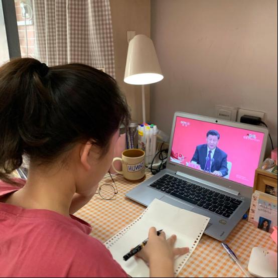 中国语言文学系学生党员在宿舍观看大会直播