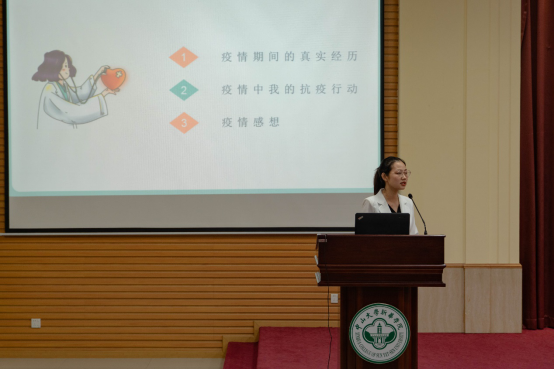 徐滋琪讲述了在抗疫期间自己和父母分别奋斗在抗疫一线的故事点滴,从父母不易、伟大的医护人员、辅导员的工作价值、党员先行这四个方面讲述了自己在抗疫期间的经历与感受。