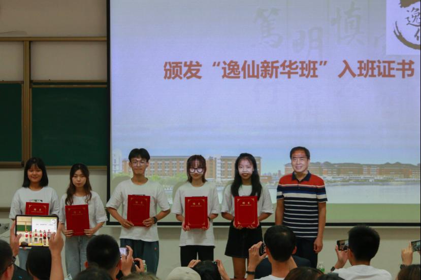 王庭槐校长(中)颁发2020级“逸仙新华班”入班证书
