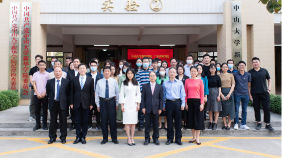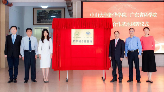 颜国荣副书记与刘霖霖董事、校长助理共同为“中山大学新华学院、广东省科学院产学研合作基地”揭牌。