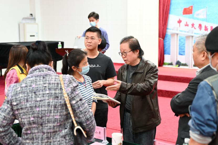 讲座尾声,陈小奇教授应王庭槐校长盛情邀请,亲自担当合唱指挥,全场师生合唱中山大学第二校歌、校友之歌《山高水长》。“山高水长,根深叶茂,上下求索,海纳百川……”这首歌为陈小奇在中山大学建校75周年时所著,苍劲的歌词和悠扬的旋律已陪伴一代又一代青年学子度过了无数宝贵的大学时光,代代学子不忘恩师之教诲、中大之校风。活动现场,熟悉的旋律与歌词再次响起,优美的音乐伴随着现场师生富有感情的合唱,音律悠扬,让人为之动容。