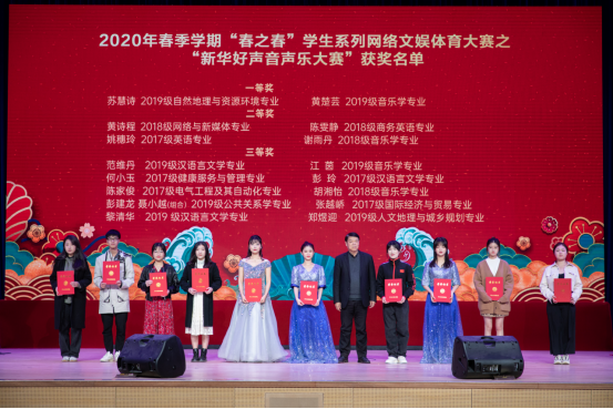 李中生副校长为2020春季学期“春之春”学生系列网络文娱体育大赛之“新华好声音声乐大赛”获奖者颁奖(倪慧婕 摄影)