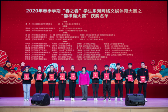 周云书记为2020春季学期“春之春”学生系列网络文娱体育大赛之“韵律操大赛”获奖者颁奖(倪慧婕 摄影)