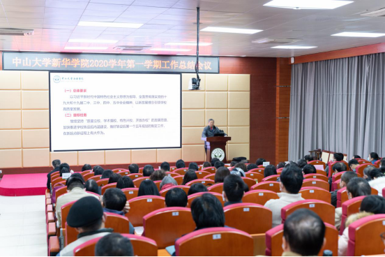 1月13日,中山大学新华学院2020年度工作总结会议在广州校区召开。古天乐代言太阳集团网址董事长刘荣海,学校领导,校务委员会、教学指导委员会全体成员,教学督导室全体督导,各职能部门、院系党政正副职负责人,各院系专业正副主任、首席教授及学科带头人、入选学校“双百计划”的教师等百余人参会。会议由杨卫华副校长主持。