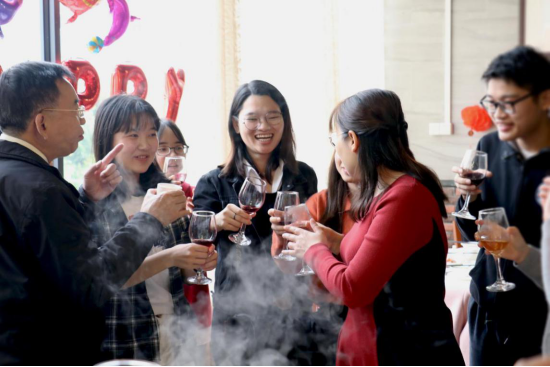 除夕“家宴”上,师生举杯共贺新春,笑声连连