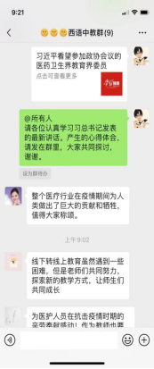 法学院党总支书记、副院长李岚在学院工作群要求全体教职工深刻感悟习近平总书记对教育界的关切,用理论指导实践,认真贯彻落实习近平总书记重要讲话精神