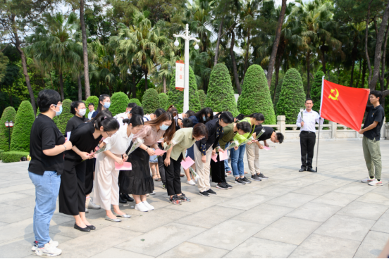 党委工作系统第二党支部安娜同志说:这是我第二次来广州起义烈士陵园瞻仰祭奠革命烈士,他们以自己的忠骨铸成中华民族向上攀登台阶,他们舍生取义、视死如归的英雄事迹让我再一次受到深刻的教育和激励,作为9100万中国共产党党员的一份子,我要从党的百年历史中汲取丰厚滋养,牢记初心,守正创新,永远听党话,坚定跟党走,用微薄之力助力中华民族伟大复兴。
