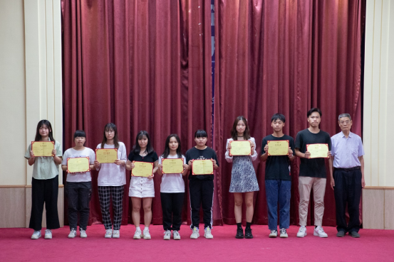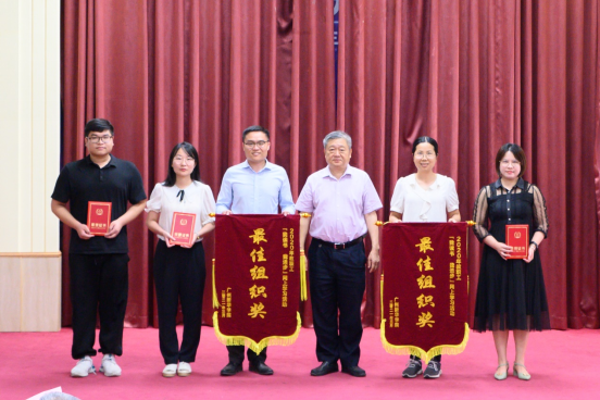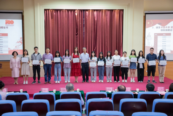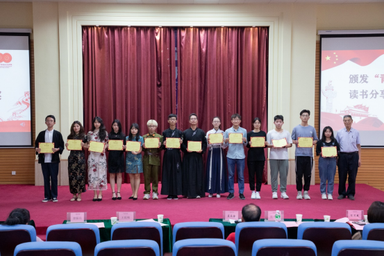 蓝永金副校长副书记(右五)为“青春·悦读”读书分享交流大赛颁发二等奖荣誉证书