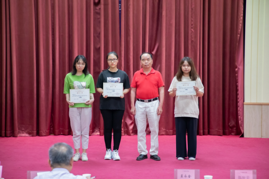 廖振亮副校长(右一)为“青春·悦读”读书分享交流大赛颁发三等奖荣誉证书