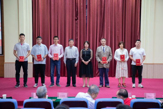 人事处处长简庚荣(左四)、教师发展中心常务副主任陈思燕(左五)为“我读书我进步”网上学习活动颁发个人学习先锋三等奖荣誉证书