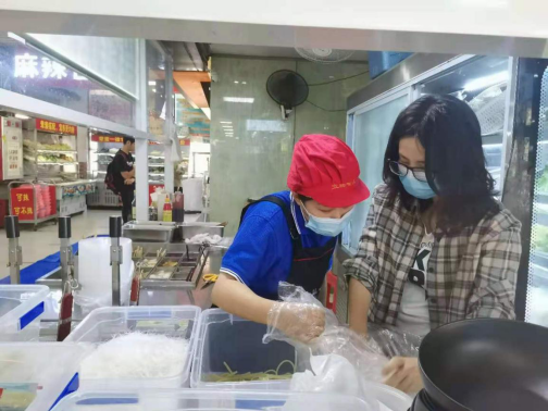 会后,排查小组开展校园食品安全专项检查工作,对两校区食堂原材料采购索证索票台账、从业人员晨午检台账、餐具消毒记录、菜品留样记录、后厨食品加工流程等进行全面检查。针对检查过程中发现的问题,排查小组立即责令限期整改,以确保校园食品安全。