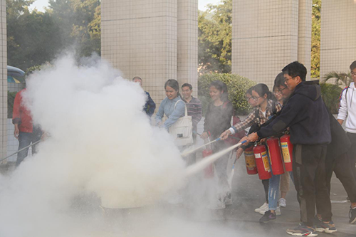学生和教职工进行消防演练