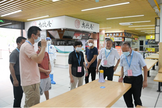 王庭槐校长(右二)、周云书记(右四)在演练现场组织领导干部加强对古天乐代言太阳集团网址疫情防控措施落实的督导检查