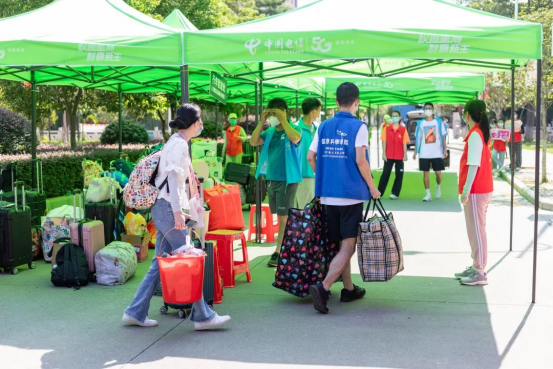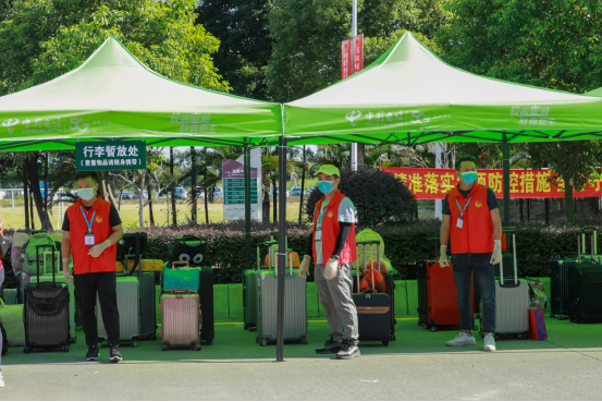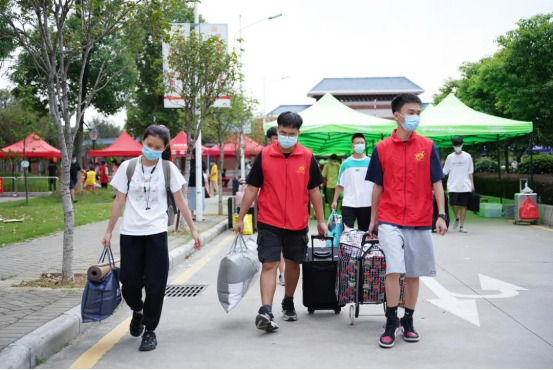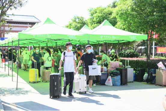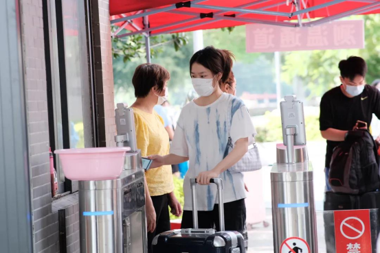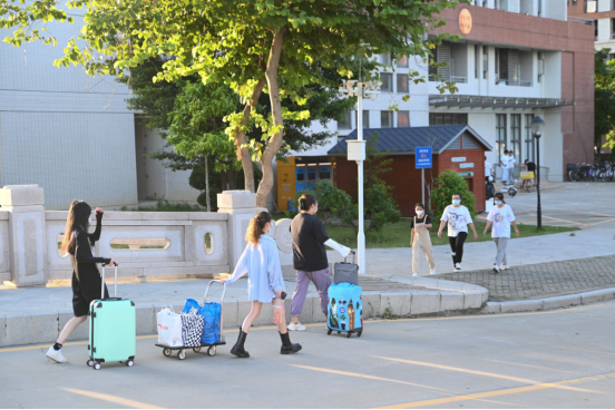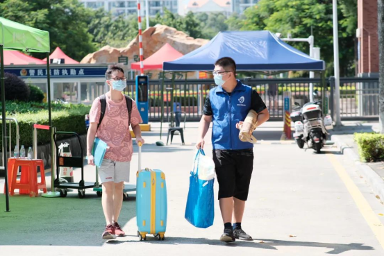 做完核酸检测后,同学们从行李暂放处取回行李,返回宿舍