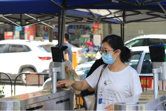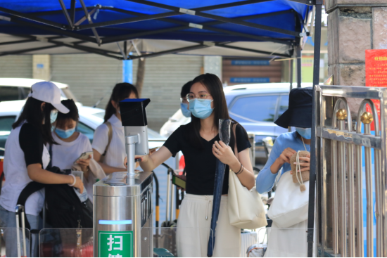 师生测温并扫“ixh健康码”后通过门禁入校