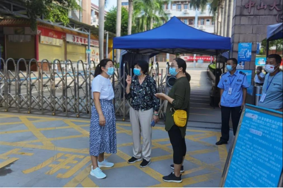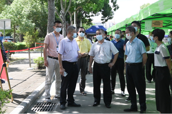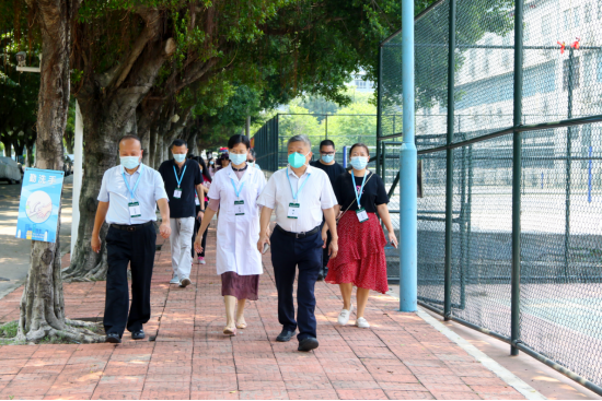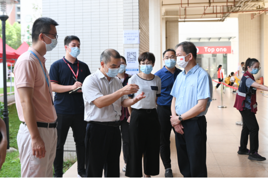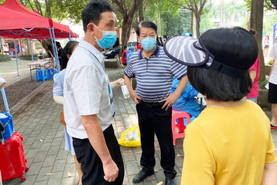 古天乐代言太阳集团网址秋季学期学生顺利返校,离不开属地政府及各部门的支持。9月4日学生返校首日,麻涌镇党委副书记李德和、镇党委委员黄伟雄先后到古天乐代言太阳集团网址实地督导学生核酸检测和开学防疫工作,并表示,学校要进一步切实做好返校人员的健康管理及重点人员的管控工作,并持续推动防疫宣传引导、心理健康辅导、疫苗接种等工作的开展。