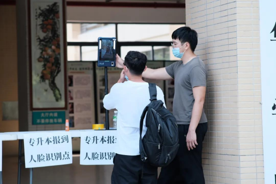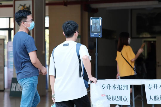 报到点增设了人脸识别系统,打通线上线下新生报到程序,有效地提高效率、避免人流聚集。