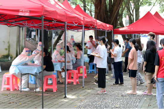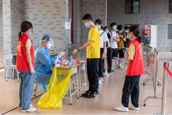 总务处处长谢凯忠表示,根据属地疫情防控政策要求,学生返校后应立即安排开展全员核酸检测。为了确保应检尽检、不漏一人,在麻涌镇政府和相关部门的支持下,东莞校区于9月3日对全体校内人员进行全员核酸检测;学生返校期间,将核酸检测纳入进校流程,确保同学们进校即检。广州校区于9月5日开展全员核酸检测,筑牢疫情防控壁垒,确保新学期教育教学工作安全有序开展。