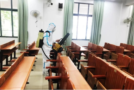 总务处、后勤管理服务中心等职能部门在校园、教室、宿舍、食堂、图书馆、实验室等重点场所开展大规模环境消杀,在公共卫生间、公共区域洗手台配备了洗手液,为同学们营造健康舒适的学习生活环境。