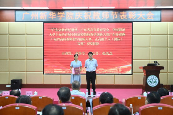 李中生副校长为获“首届全国高校教师教学创新大赛广东分赛暨广东省高校教师教学创新大赛正高组“个人(团队)二等奖”团队颁奖