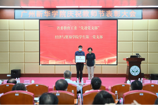 蓝永金副校长、副书记为“先进党支部”获奖单位代表颁奖