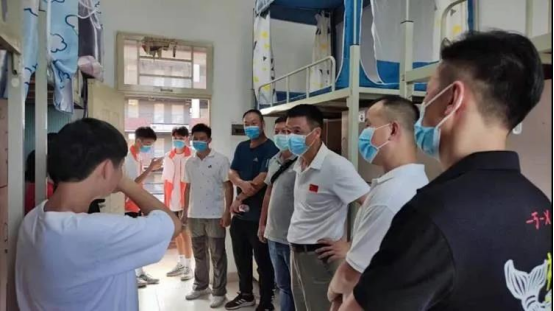 肖化副校长(左三)走访新生宿舍与新生亲切交谈