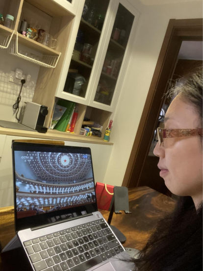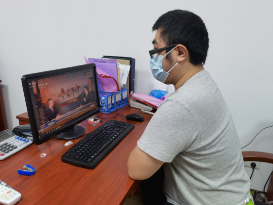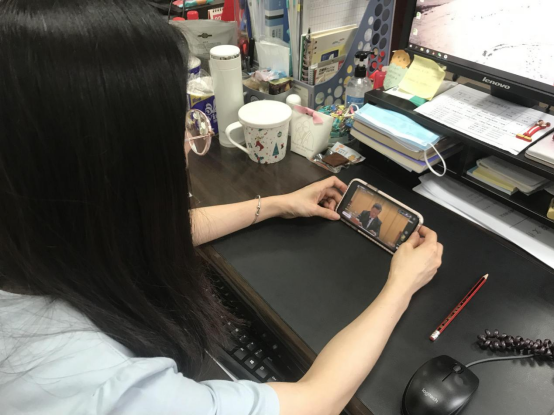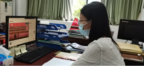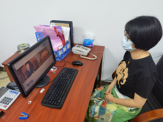 经济与贸易学院教工第一支部副书记黄燕玲老师观看直播