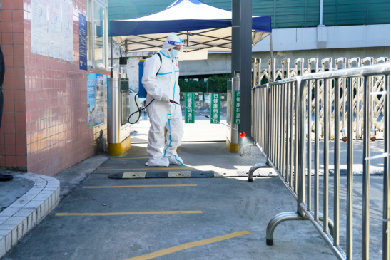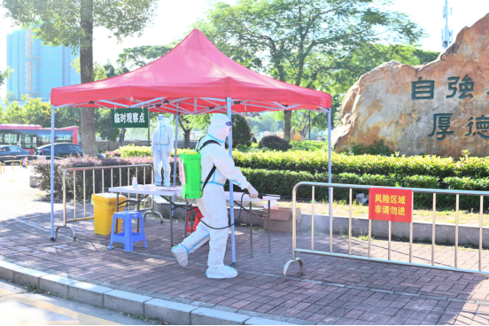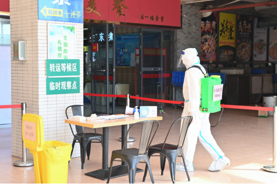 工作人员对食堂转运等候区、临时观察点进行消毒