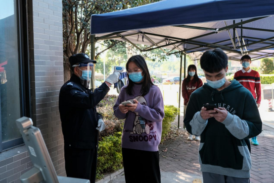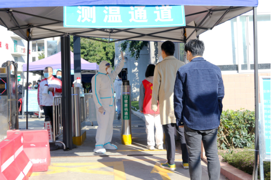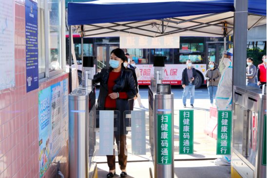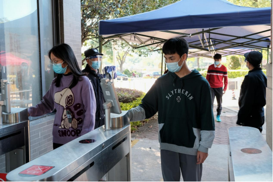 广州校区教职员工按要求亮“ixh”绿码、测温后过闸门