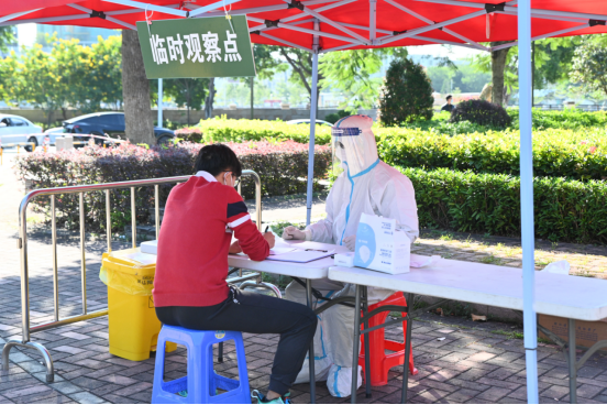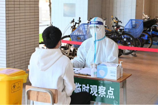 发热学生在临时观察点进行二次测温,并进行流行病学问卷调查