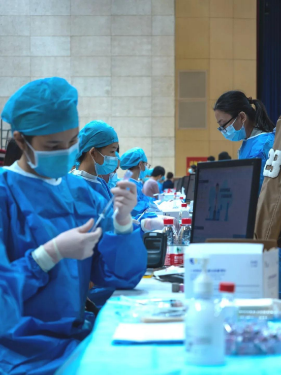 医护人员认真细致的操作稳步推进接种工作