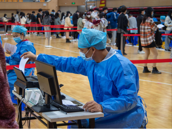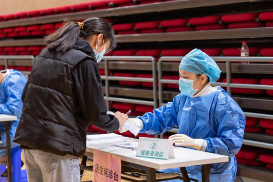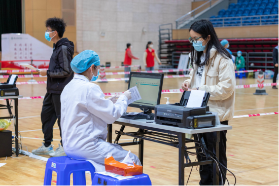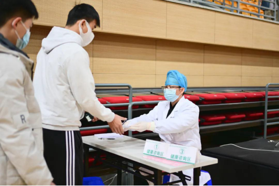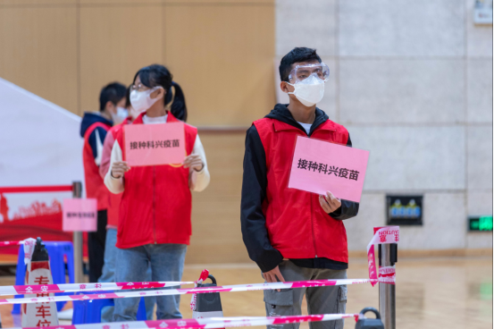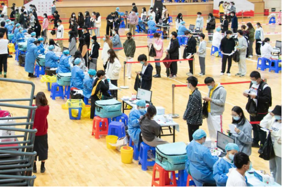 疫苗接种现场共设置科兴和生物两处疫苗供应点,为具不同需求的师生提供接种服务。场地严格按照操作规范进行规划,共布置了10处接种点,设有健康咨询区、信息登记区、接种区、留观区等功能区。