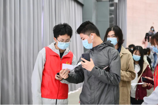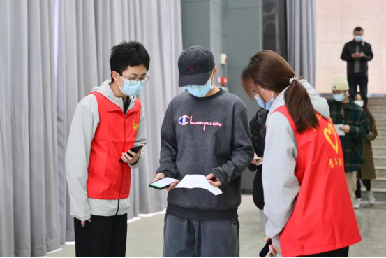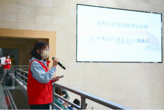 引导到场师生完成接种流程