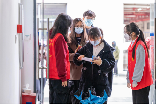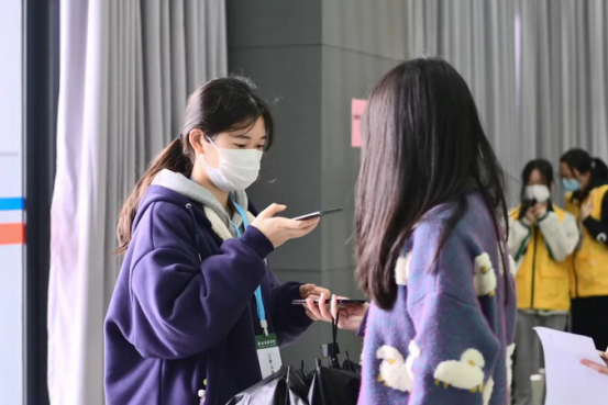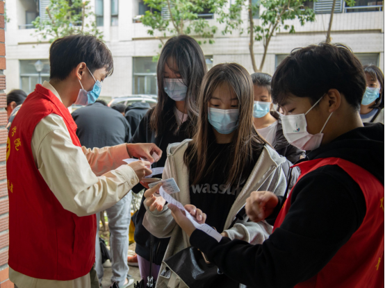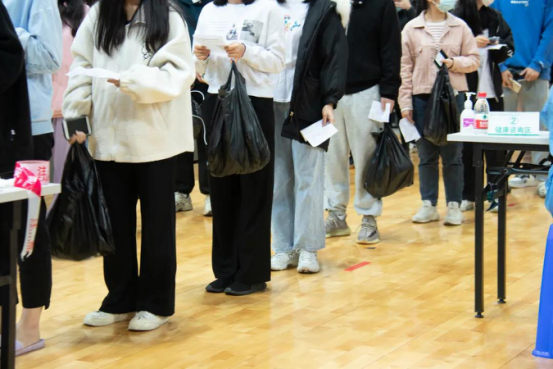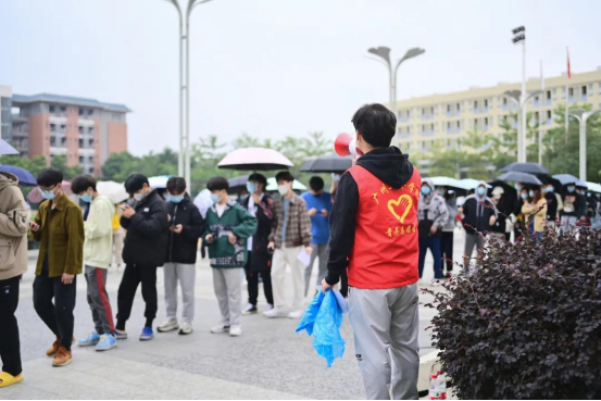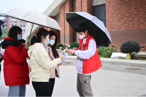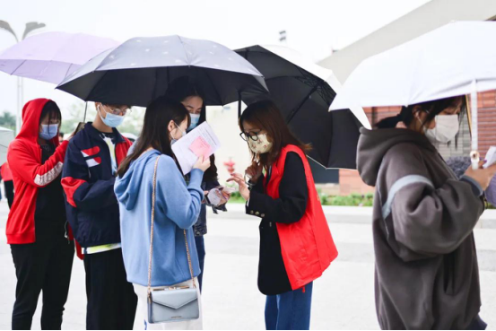 在雨天里,志愿者为接种师生贴心准备了收纳雨具的塑料袋,这给19级会计学专业的苏彤(左一)留下了深刻印象。在此,她想对志愿者们说:“辛苦你们了,你们是最棒的!”同时,她也深刻认识到了此次加强针接种活动的重要意义,“年关将近,接种疫苗不但加强了师生的防疫能力,而且能够助力全市乃至全国的防疫工作。”