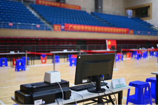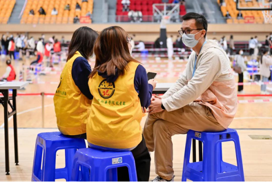 体育馆内设有健康咨询区、信息登记区、