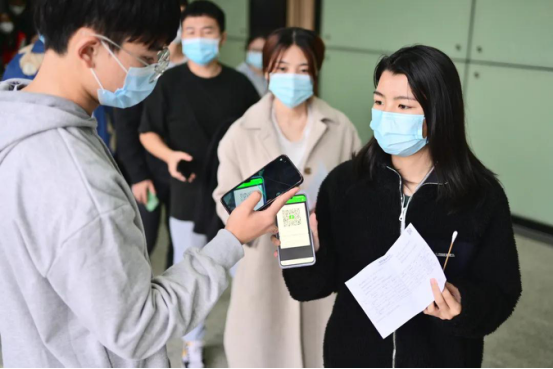 接种人员扫描iXH健康码进行登记后离场